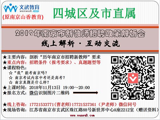 (5)本次筆試成績(jī)作為應(yīng)聘南京市鼓樓區(qū)所屬公辦學(xué)校新進(jìn)教師的必備條件,在2019年度內(nèi)有效。