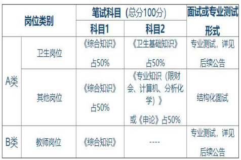 1、筆試工作由市人社部門統(tǒng)一組織,采取閉卷形式進(jìn)行,考試科目根據(jù)崗位類別如下表: