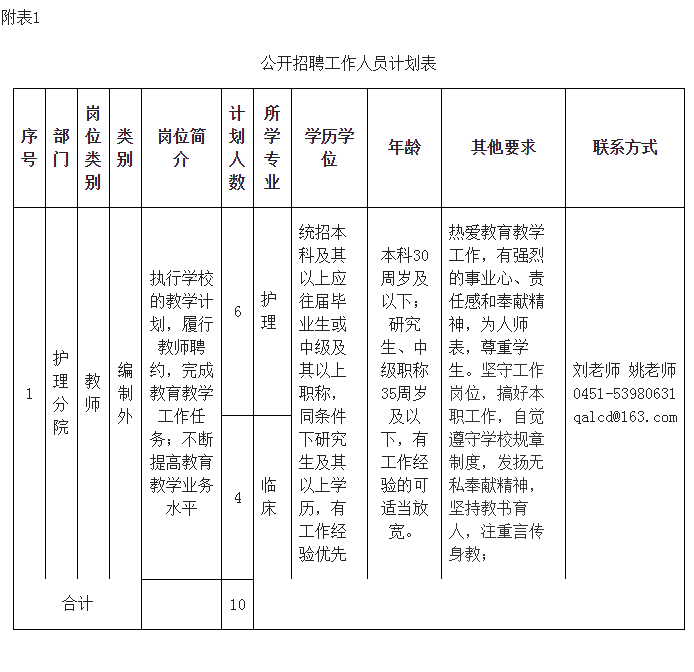 根據(jù)《黑龍江省省直事業(yè)單位公開招聘工作人員實施細(xì)則》規(guī)定,結(jié)合本單位人員需求實際情況,擬面向社會公開招聘護(hù)理專業(yè)教師崗位工作人員10人,現(xiàn)招聘方案如下:
