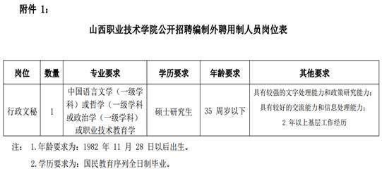 (一)招聘崗位:見《山西職業(yè)技術(shù)學(xué)院公開招聘編制外聘用制人員崗位表》(附件1)。