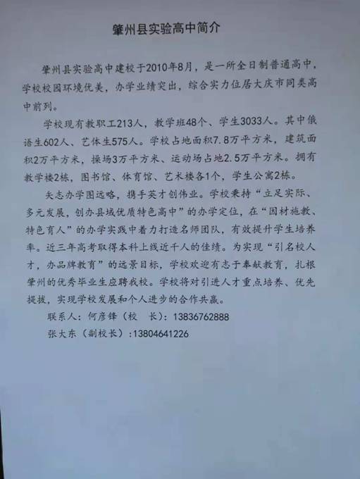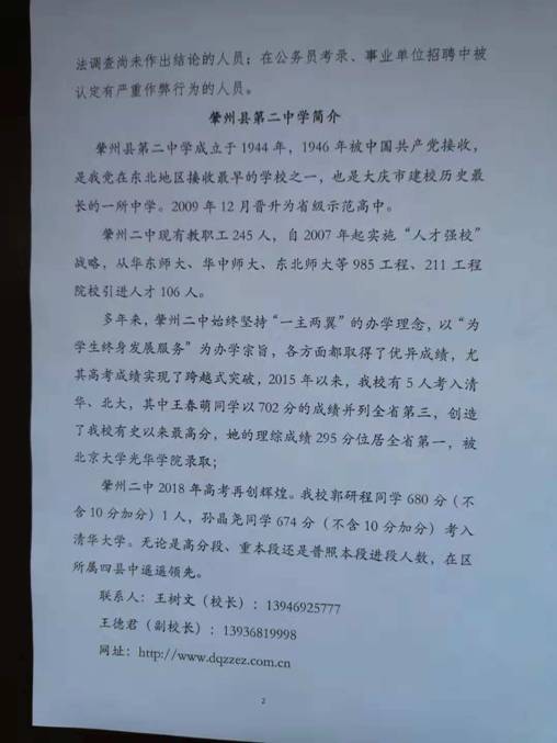 2018黑龍江大慶肇州第二中學(xué)、實驗高中招聘教師公告【10人】