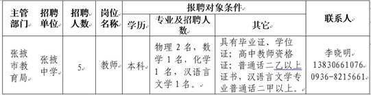 2.招聘對象不限生源或戶籍,同等條件下優(yōu)先招聘張掖市生源畢業(yè)生。