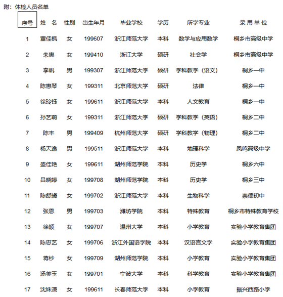 2019浙江嘉興桐鄉(xiāng)市教師招聘體檢通知公告