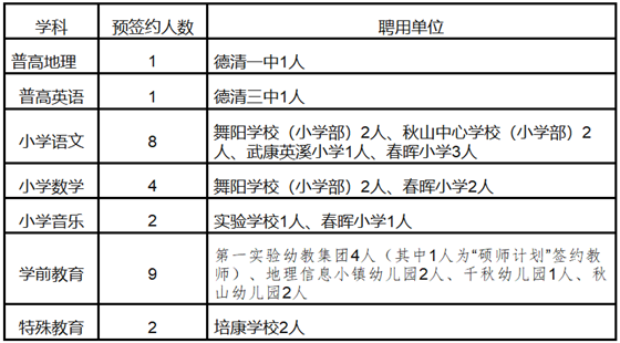 2019浙江湖州德清縣教師招聘聘用單位名單公告
