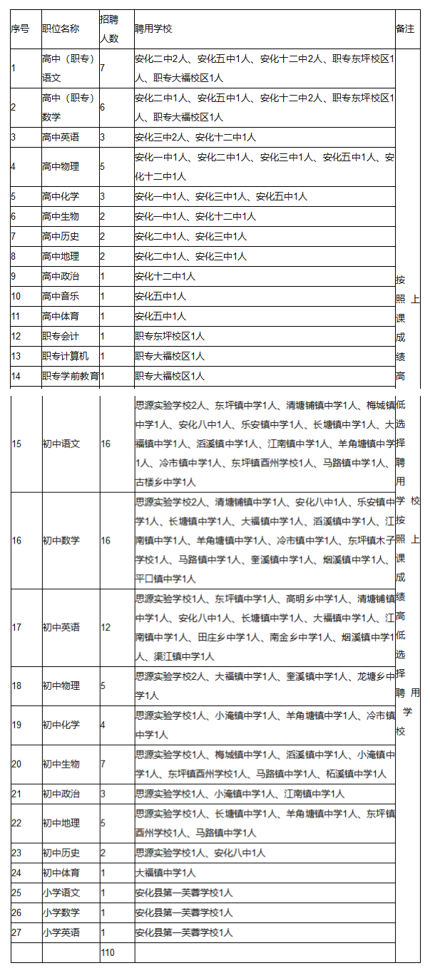 經(jīng)安化縣教師招聘領(lǐng)導(dǎo)小組研究,決定面向社會(huì)和相關(guān)高等院校直接招聘全額撥款事業(yè)編制中小學(xué)教師110名,F(xiàn)將相關(guān)事項(xiàng)公告如下: