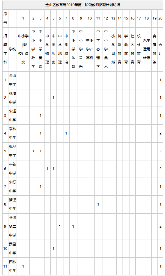 2019年金山第二批教師招聘148人崗位表