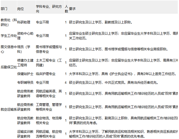 為進(jìn)一步深化干部人事制度改革,拓寬選人用人視野,根據(jù)國家及民航局有關(guān)事業(yè)單位公開招聘人員的相關(guān)規(guī)定,按照公開、平等、競爭、擇優(yōu)的原則,現(xiàn)面向社會(huì)公開招聘教職員工45名,現(xiàn)將相關(guān)事宜公告如下。