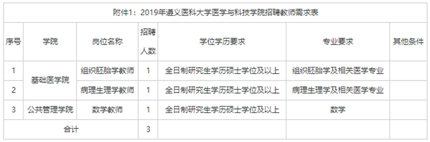 1.報名時間:2019年3月8日至2019年3月22日。在此期間應(yīng)聘人員均可填寫《遵義醫(yī)科大學(xué)醫(yī)學(xué)與科技學(xué)院應(yīng)聘人員報名表》(附件2)進行報名。