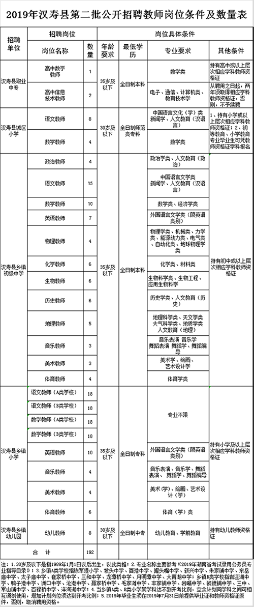 2019湖南常德市漢壽縣第二批招聘教師簡(jiǎn)章【192名】