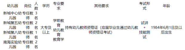 根據(jù)舟教人【2016】14號文件《舟山市本級公辦幼兒園編外人員管理辦法》要求,結合幼兒園實際情況,特制訂2019年度新城中心幼兒園、新城第五幼兒園、新城第八幼兒園、南海實驗幼兒園非在編專任教師招聘公告。