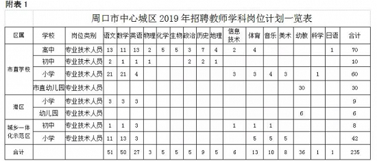 1.周口市中心城區(qū)2019年招聘教師學(xué)科崗位一覽表
