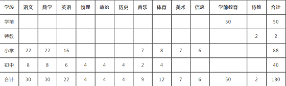 (二)崗位及名額:學前50名,特殊教育2名,小學88名,初中40名。
