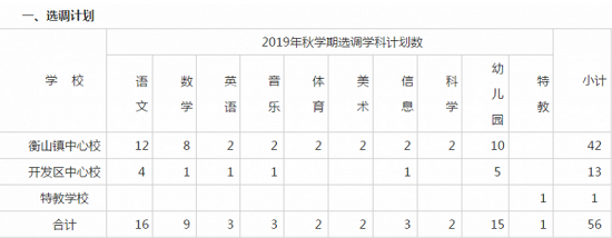 選調(diào)學(xué)科計(jì)劃數(shù)與報(bào)名人數(shù)達(dá)不到1:2的取消或相應(yīng)減少該學(xué)科選調(diào)計(jì)劃數(shù)(如報(bào)考人數(shù)不足,優(yōu)先滿足開發(fā)區(qū)中心校,相應(yīng)核減衡山鎮(zhèn)中心校相關(guān)學(xué)科選調(diào)計(jì)劃)。