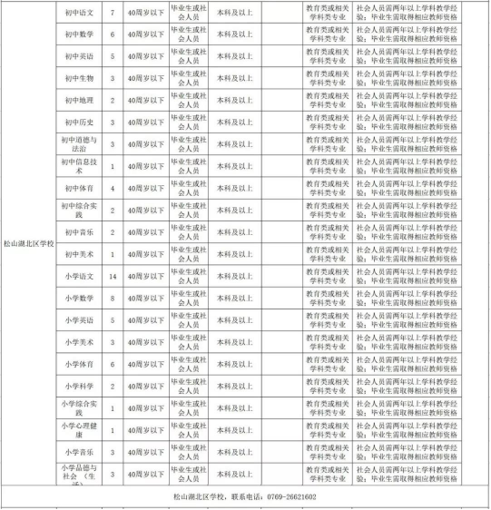 松山湖中小學(xué)招聘崗位(計劃)