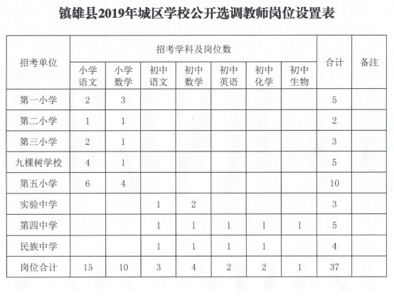 附:鎮(zhèn)雄縣2019年城區(qū)學(xué)校公開選調(diào)教師崗位設(shè)置表