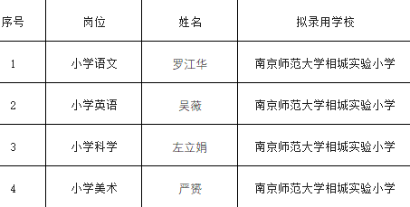 2019年江蘇教師招聘 南京師范大學(xué)相城實(shí)驗(yàn)小學(xué)補(bǔ)充招聘教師擬錄用人員公示