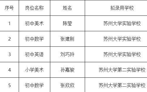 2019年蘇州大學(xué)實(shí)驗(yàn)學(xué)校、蘇州大學(xué)第二實(shí)驗(yàn)學(xué)校補(bǔ)充招聘教師擬錄用人員公示