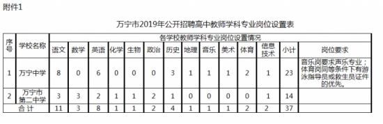 附件:1.萬寧市2019年公開招聘高中教師學(xué)科專業(yè)崗位設(shè)置表