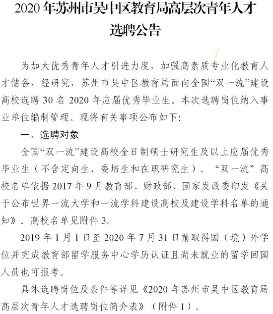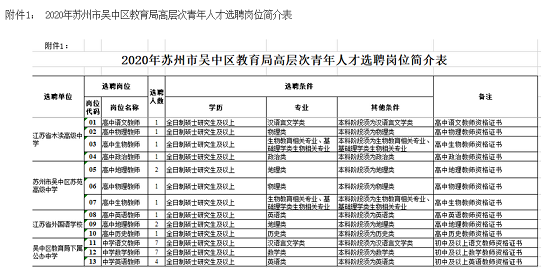 2020年蘇州市吳中區(qū)教育局高層次青年人才選聘公告