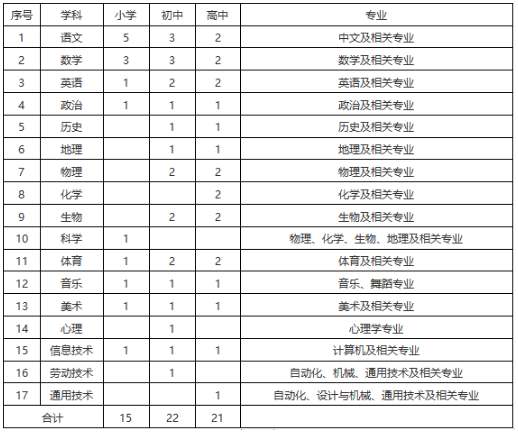 一、招聘教師崗位、數(shù)量及專業(yè)要求