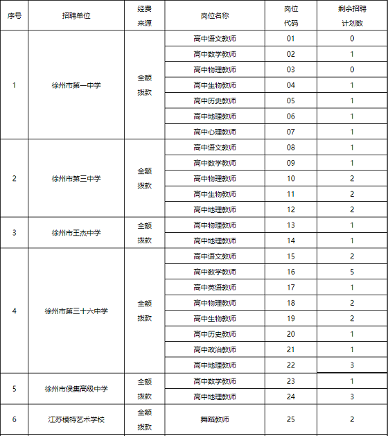 根據(jù)《2020年徐州市教育局直屬學(xué)校赴高校公開招聘教師公告》要求,現(xiàn)將崗位空缺計(jì)劃數(shù)公布如下: