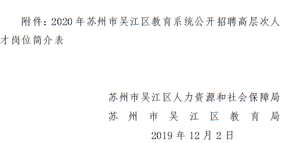 2020年江蘇教師招聘 蘇州市吳江區(qū)教育系統(tǒng)公開招聘層次人才簡(jiǎn)章