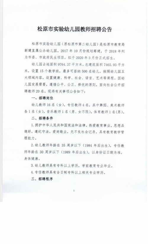 2019年吉林松原市實(shí)驗(yàn)幼兒園教師招聘公告【20人】,現(xiàn)場(chǎng)報(bào)名時(shí)間12月18-19日
