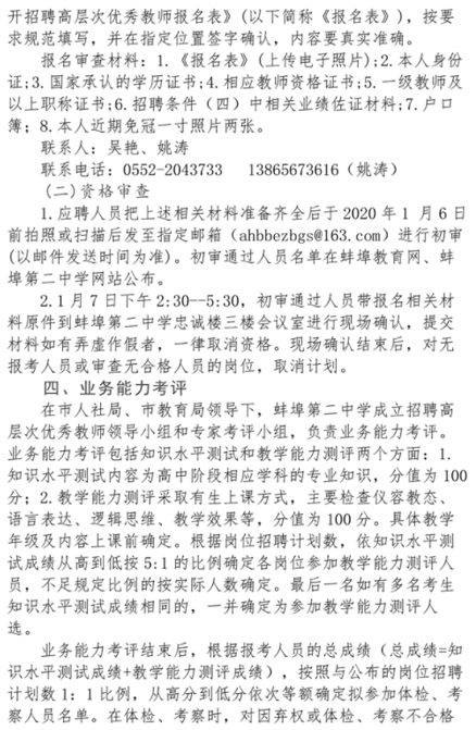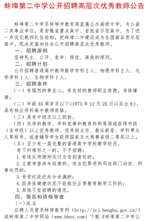 2019安徽教師招聘 蚌埠第二中學(xué)招聘高層次優(yōu)秀教師公告【6人】