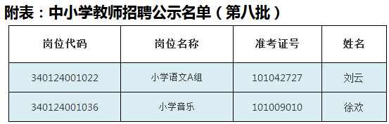 安徽教師招聘 合肥廬江縣2019年中小學(xué)新任教師公開招聘公示(第八批)