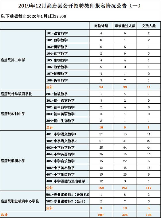 山東教師招聘 聊城高唐縣2019年12月招聘教師報(bào)名情況公告(一)