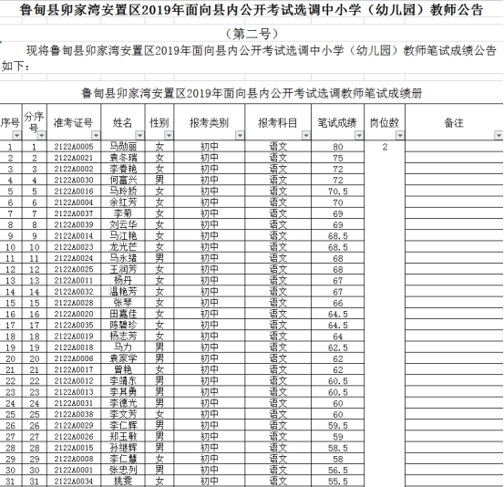 云南昭通市魯?shù)榭h卯家灣安置區(qū)2019年面向縣內(nèi)公開考試選調(diào)中小學(xué)(幼兒園)教師公告(第二號)