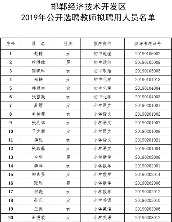 河北教師招聘 邯鄲經(jīng)濟(jì)技術(shù)開發(fā)區(qū)2019年公開選聘教師擬聘用人員公示