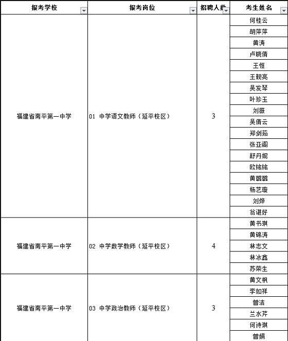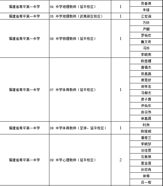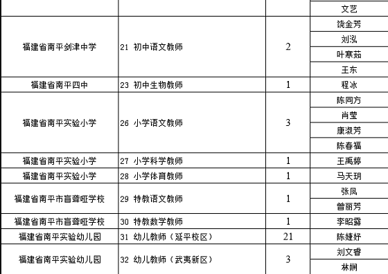 福建教師招聘 南平市屬中小學(xué)2020年第三屆“人才南平校園行”專項教師招聘擬進入面試人員名單