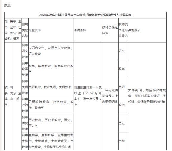 云南德宏州隴川縣民族中學2020年考核招聘教師公告