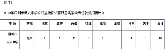 附件:1.2020年梧州市第六中學公開直接面試招聘急需緊缺專任教師招聘計劃(使用聘用教師控制數(shù))(第三輪)