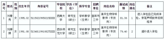 四川宜賓市第三中學(xué)校2019年引進(jìn)高層次人才招聘教師面試考核成績(jī)匯總