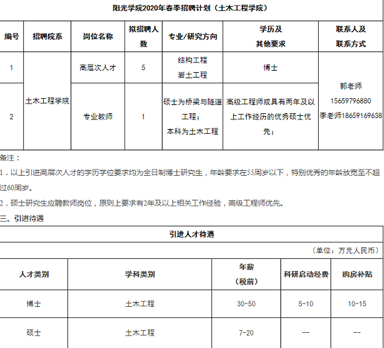 福建福州教師招聘 陽光學院土木工程學院2020年招聘博士、碩士公告