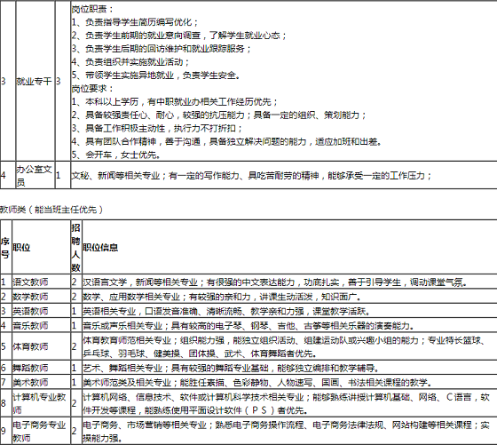 (3)本科以上學(xué)歷,專業(yè)對口,專業(yè)知識扎實;具有相應(yīng)學(xué)段教師資格證;普通話水平達(dá)國家二級乙等以上(其中應(yīng)聘語文、英語科普通話水平達(dá)二級甲等以上);現(xiàn)代信息技術(shù)運用熟練;宣傳專干要有較好的文字功底,會電腦,能獨立制作微信、PPT、視頻。