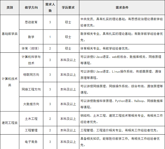 合肥科技職業(yè)學(xué)院是經(jīng)教育部批準(zhǔn)的全日制普通高等院校,是省政府"861"計(jì)劃重點(diǎn)支持發(fā)展的高校,學(xué)院設(shè)置以現(xiàn)代信息技術(shù)應(yīng)用為主要特征,以電子信息類專業(yè)為引領(lǐng),智能制造類和現(xiàn)代建筑類專業(yè)為主體、財(cái)經(jīng)信息類和文化藝術(shù)類專業(yè)為兩翼,學(xué)科專業(yè)協(xié)調(diào)發(fā)展,開設(shè)有軟件技術(shù)、工程造價(jià)、數(shù)字媒體等近30個(gè)專業(yè)。為適應(yīng)學(xué)院快速發(fā)展,現(xiàn)面向社會(huì)招聘各類優(yōu)秀人才。