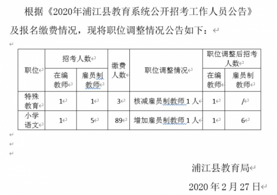 浦江教育網(wǎng)關(guān)于2020年金華浦江縣教育系統(tǒng)公開招考工作人員職位調(diào)整公告