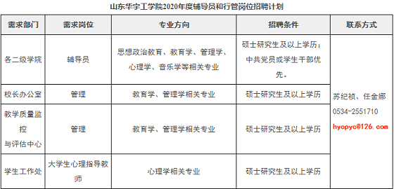 2020年度德州教師招聘 山東華宇工學(xué)院人才招聘簡章