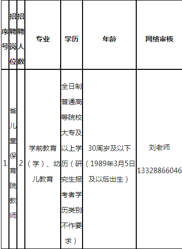 因工作需要,根據(jù)省教育廳、省人社廳、省委編辦《關(guān)于做好2020年全省中小學(xué)幼兒園新任教師公開招聘工作的通知》和《福建省省屬事業(yè)單位公開招聘工作人員考試暫行辦法》(閩人發(fā)〔2006〕11號)等文件精神,省婦聯(lián)直屬事業(yè)單位省兒童保育院擬向社會公開招聘新任教師2名,F(xiàn)制定工作方案如下: