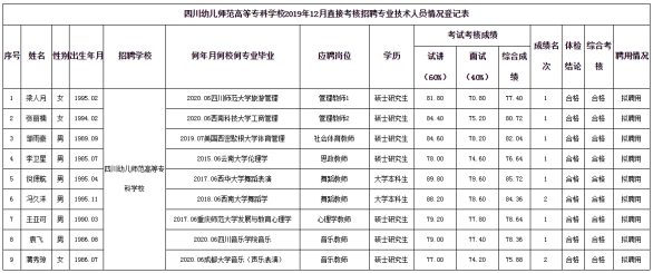 四川幼兒師范高等專科學(xué)校2019年12月直接考核招聘教師擬聘人員公示