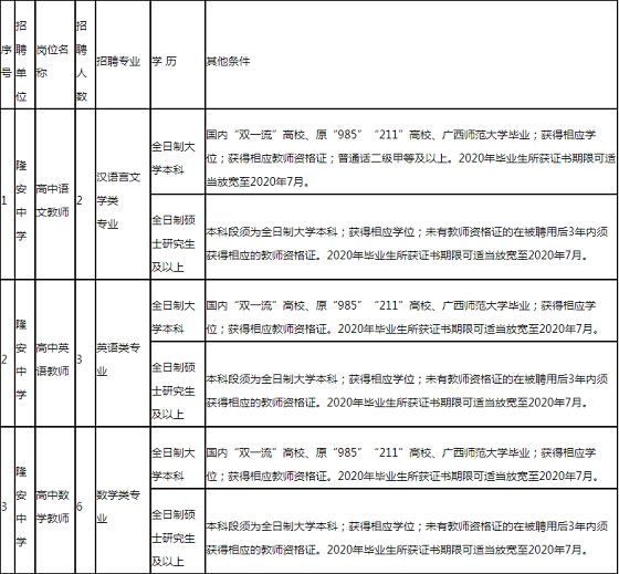 廣西教師招聘 南寧市隆安縣2020年招聘急需緊缺高層次人才教師,3月31日開始報(bào)名【34人】