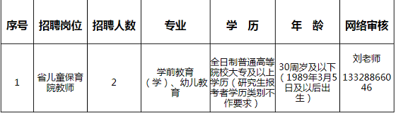 因工作需要,根據(jù)省教育廳、省人社廳、省委編辦《關(guān)于做好2020年全省中小學幼兒園新任教師公開招聘工作的通知》和《福建省省屬事業(yè)單位公開招聘工作人員考試暫行辦法》(閩人發(fā)〔2006〕11號)等文件精神,省婦聯(lián)直屬事業(yè)單位省兒童保育院擬向社會公開招聘新任教師2名,F(xiàn)制定工作方案如下:
