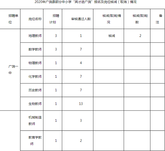 附件:2020年廣饒縣部分中小學“英才進廣饒”報名及崗位核減(取消)情況