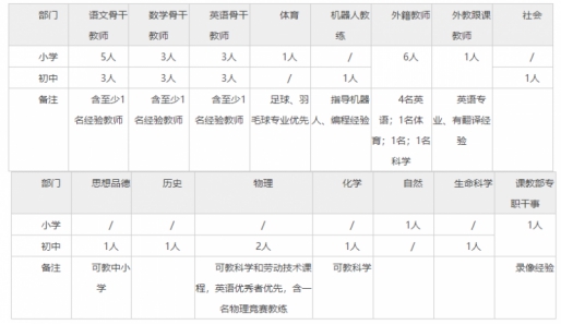 因?qū)W校教學(xué)需要,持續(xù)招聘教師,具體情況如下: