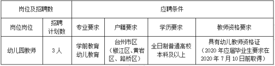 黃巖區(qū)機(jī)關(guān)幼兒園2020公開(kāi)招聘教師崗位及條件