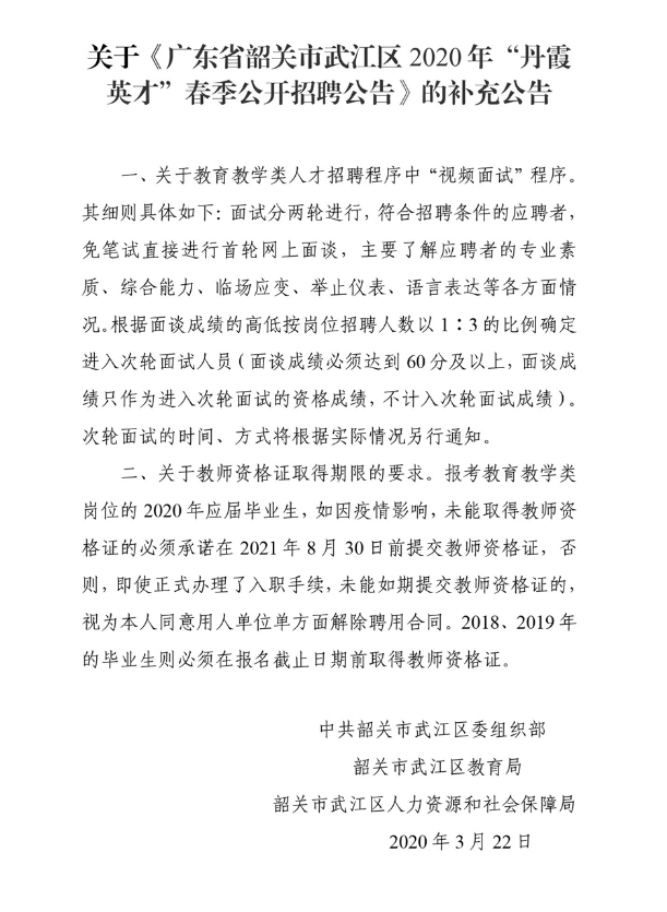 2020廣東省韶關(guān)市武江區(qū)招聘教師補(bǔ)充公告 歡迎加入廣東教師考編群,群號(hào):336260161,考情、招聘信息早知道