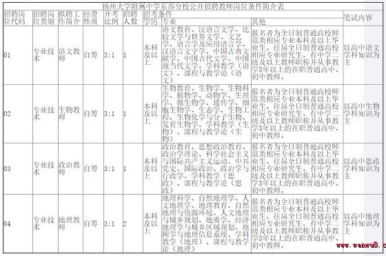 3.《揚州大學附屬中學東部分校公開招聘教師崗位條件簡介表》: